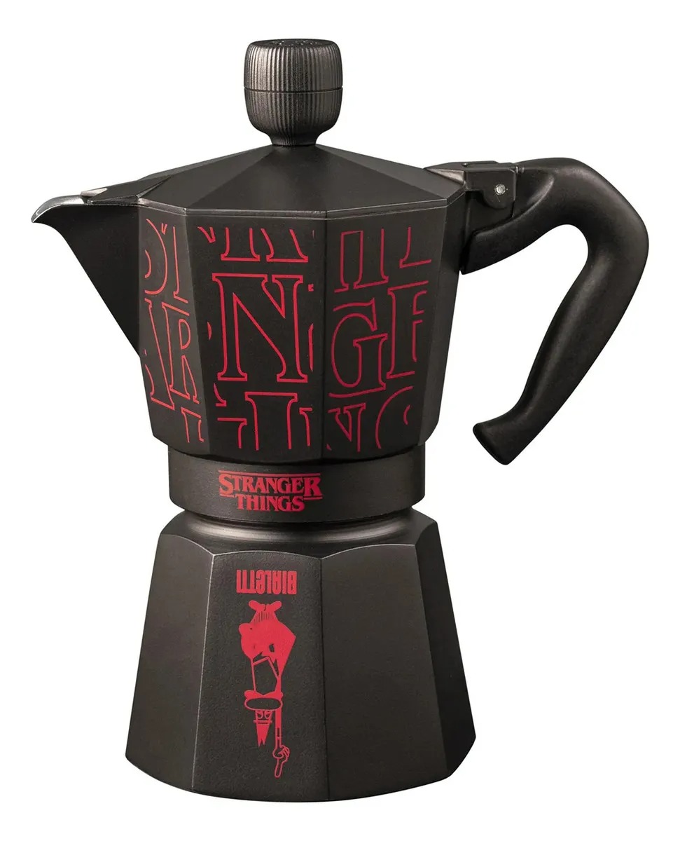 Con capacidad para 6 tazas (aprox. 300 ml), este modelo mantiene la calidad y tradición de Bialetti, pero añade un detalle único: un pomo musical que reproduce el tema principal de Stranger Things al comenzar la preparación.